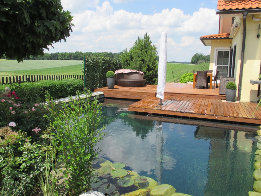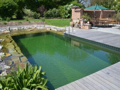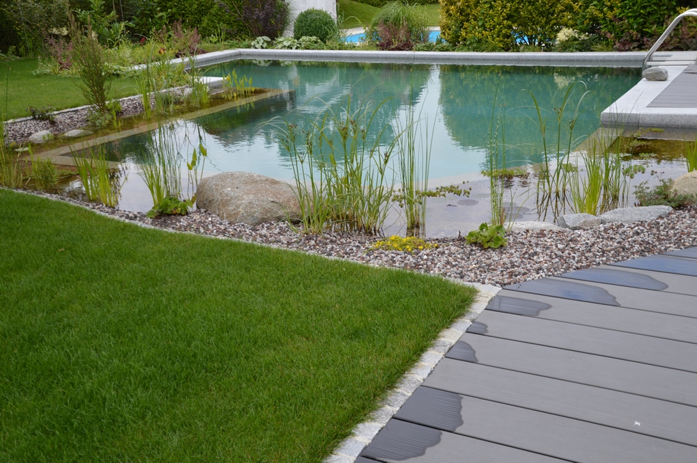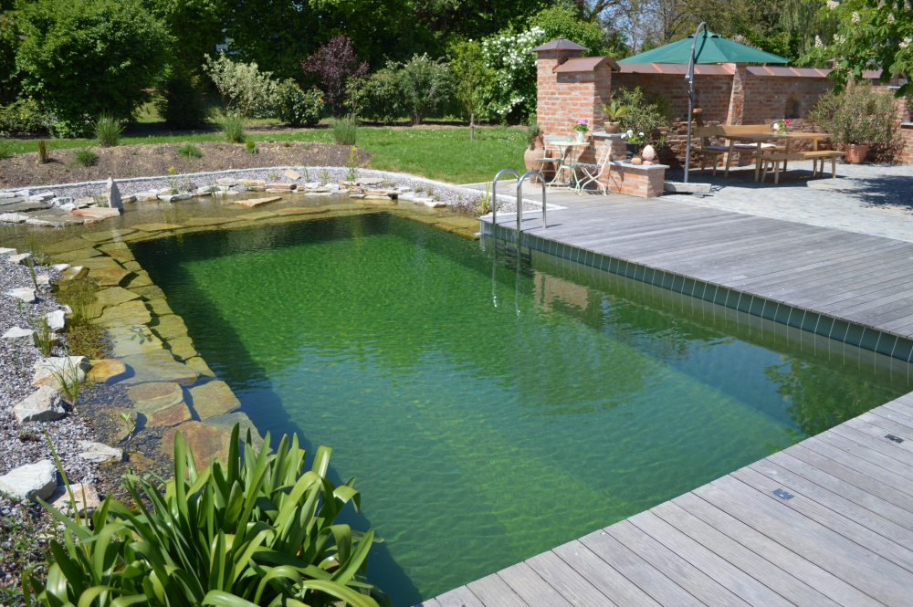 Die Bio-Variante des Swimming-Pools benötigt keine chemische Wasseraufbereitung, denn die Reinigung wird von Pflanzen und Kleinstlebewesen übernommen. Zudem entspricht ein Teich mit seinem geringeren Pflegeaufwand und geringeren Wartungskosten genau den Bedürfnissen berufstätiger Eltern.